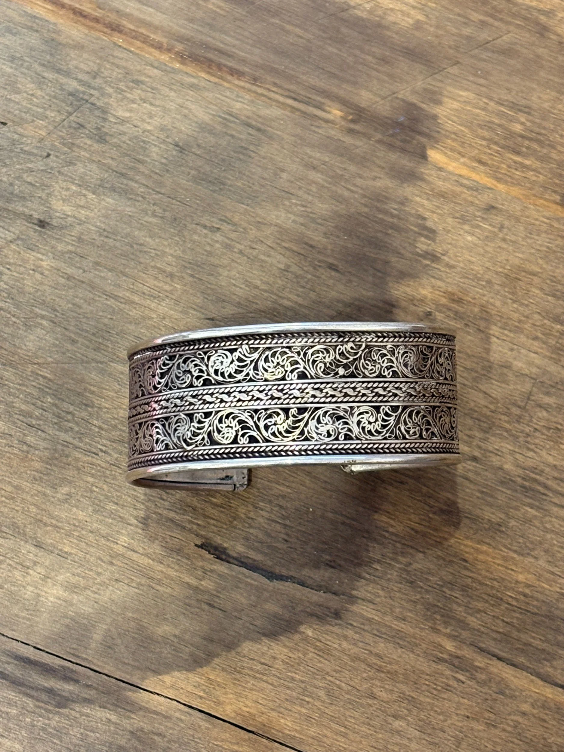 Image 1 of 2 Image 2 of 2 Filigree Cuff $59.00 Handmade in India, this gorgeous cuff is silver plated and features a lovely filigree design.One size fits all Get notified by email when this product is in stock. Add To Cart Added! Handmade in India, this gorgeous cuff is silver plated and features a lovely filigree design.One size fits all