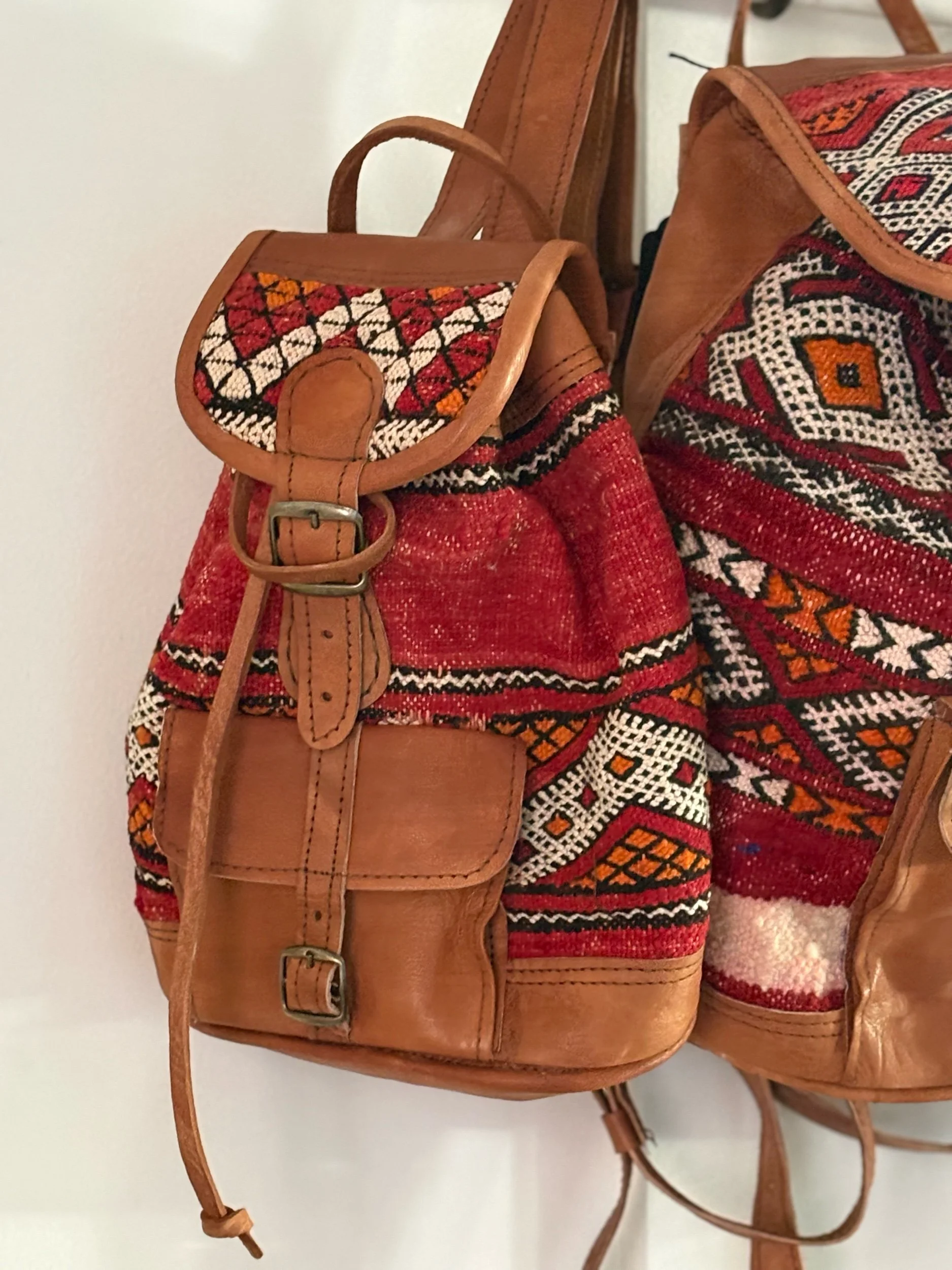 Handmade in Marrakesh, made from recycled leather and recycled moroccan kiliim textiles.
